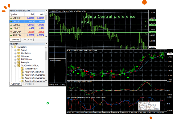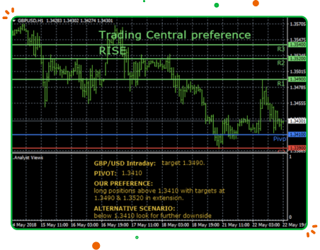 Here we are looking at a signature chart by Trading Central. There may be indicators, patterns or trend lines plotted on the price chart.