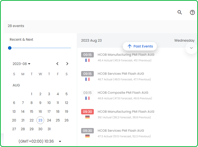 Here you’ll find current and upcoming economic events listed in chronological order with a red line marking the current time.